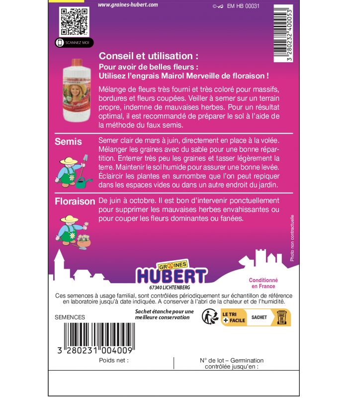 Ce mélange est très fourni (plus de 20 variétés) et très coloré.