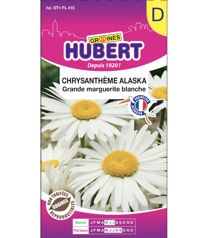 Sachet de 1 gramme soit environ 440 graines de Chrysanthème Alaska Grande Marguerite Blanche