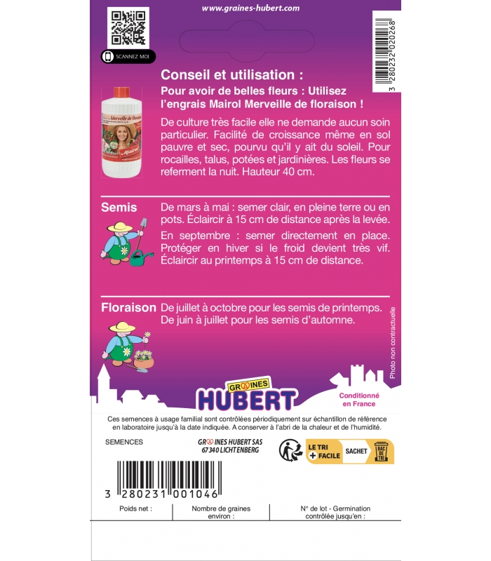 Ces semences à usage familial sont contrôlées périodiquement en laboratoire sur échantillon de référence jusquà la date indiquée sur l'emballage.