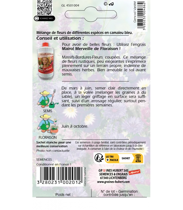 Informations complémentaires sur le Mélange de Fleurs d'Eté Tons Bleus :