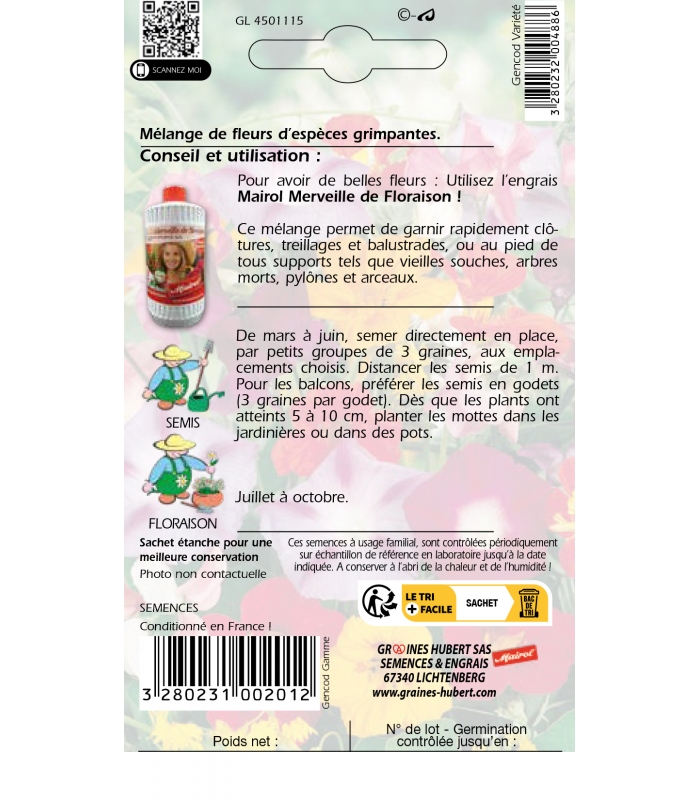 Informations complémentaires sur le Mélange de Fleurs Grimpantes :