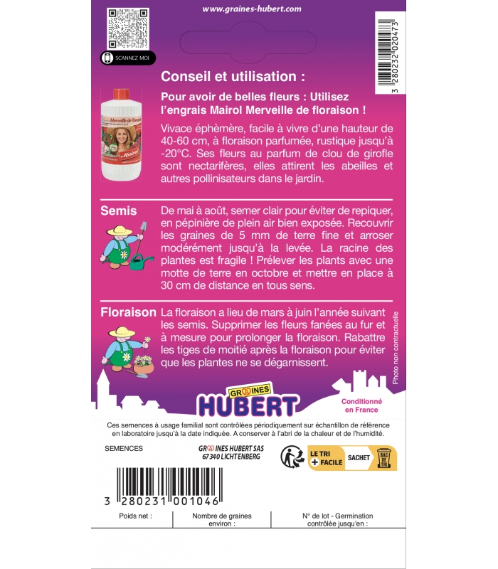 Sachet de 1 gramme soit environ 600 graines de Giroflée Ravenelle Variée "Giroflée des Murailles"