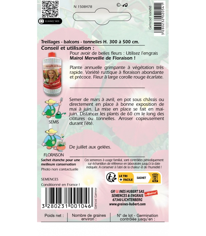 Informations complémentaires sur les Ipomées Scarlett O'hara Rouge :