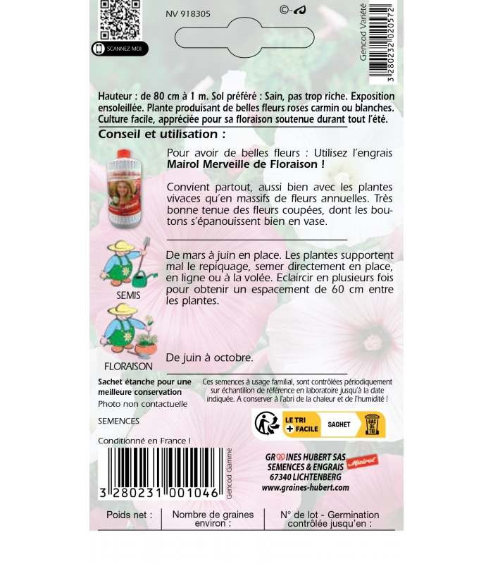 Informations complémentaires sur les Lavatères à Grandes Fleurs Variées :