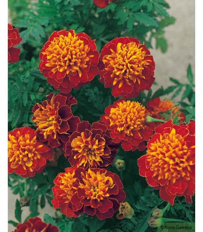 L'oeillet d'Inde Royal Bicolore à une floraison très abondante et de longue durée.