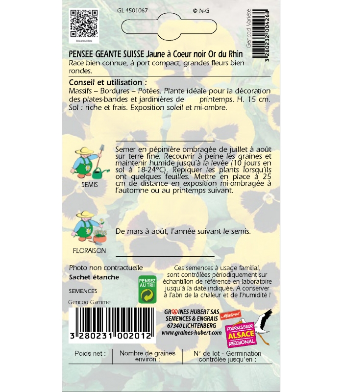 Informations complémentaires sur les Pensées Géantes Suisses Jaune à Coeur Noir Or du Rhin :