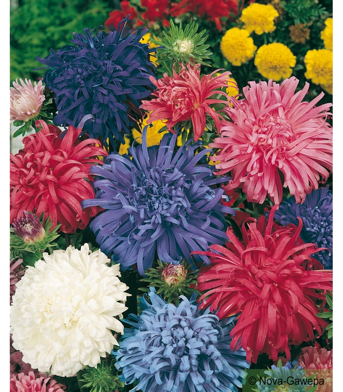 La reine-Marguerite plume d'autruche variée fleurit de juillet à octobre.
