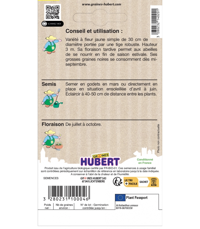Informations complémentaires sur les Soleils Géants Simples Jaune d'Or BIO: