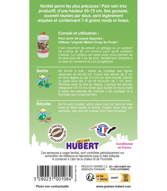 Cette boite de 175 grammes vous permet de récolter plus de 5 kg de pois.