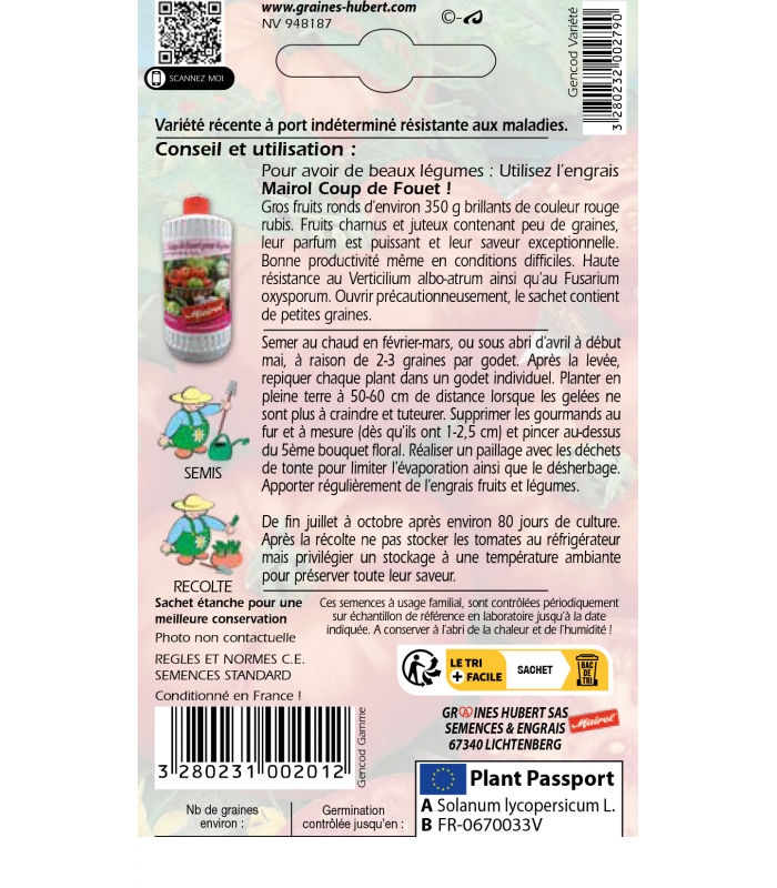 Ces semences à usage familial sont contrôlées périodiquement sur échantillon de référence en laboratoire jusqu'à la date indiquée sur le sachet.
