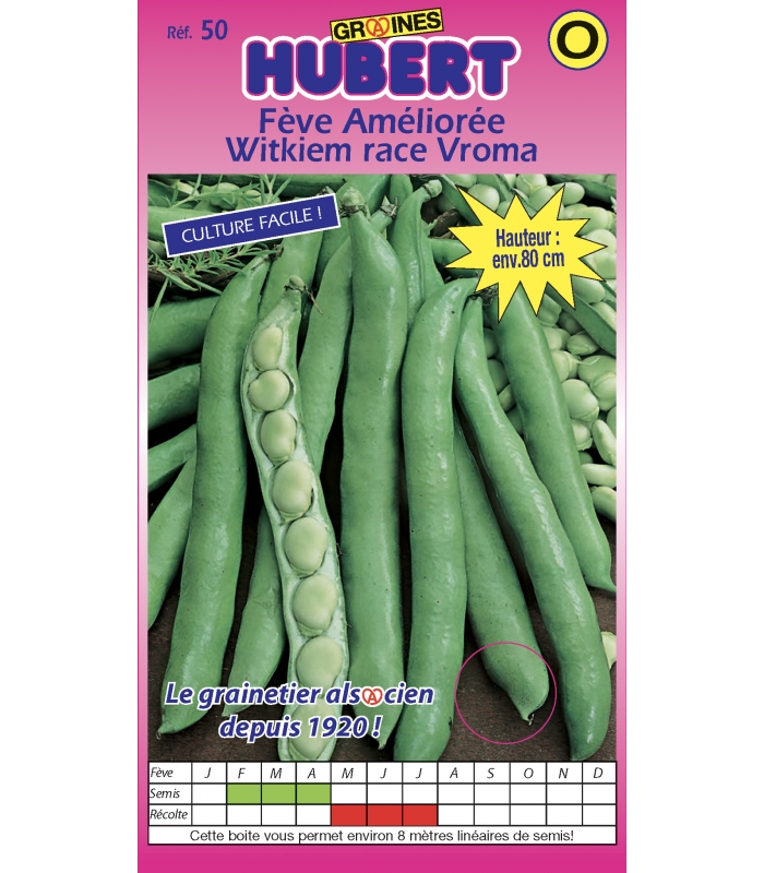 Boite de 150 grammes de graines de Fève Améliorée Witkiem race VROMA pour environ 8 mètres linéaires de semis.