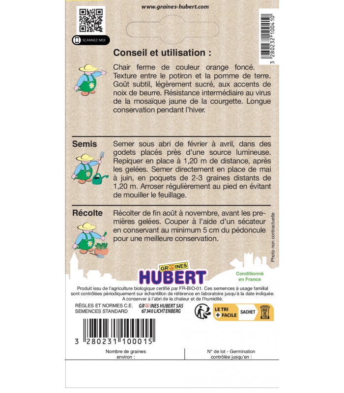 Ces semences à usage familial sont contrôlées périodiquement sur échantillon de référence en laboratoire, jusqu'à la date indiquée sur l'emballage.