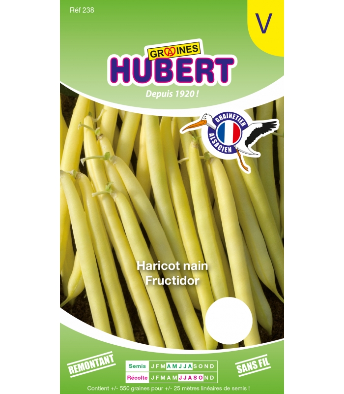 Boite de 150 grammes soit environ 550 graines de haricot mangetout beurre Fructidor pour +/- 25 mètres linéaires de semis.