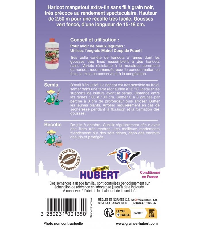 Très belle variété de haricots à rames dont les gousses sont très fines et ressemblent à des haricots nains.
