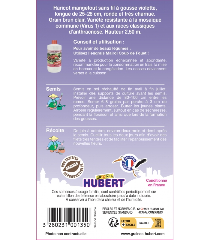Informations complémentaires sur les haricots mangetout ramant Blauhilde :