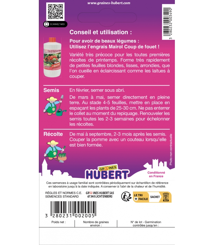 Ces semences à usage familial sont contrôlées périodiquement sur échantillon de référence en laboratoire jusqu'à la date indiquée sur l'emballage.