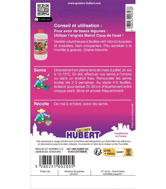 Ces semences à usage familial sont contrôlées périodiquement sur échantillon de référence en laboratoire jusqu'à la date indiquée sur l'emballage.