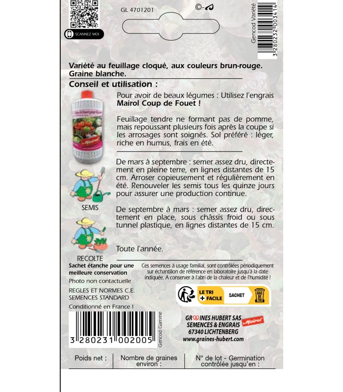 Ces semences à usage familial sont contrôlées périodiquement sur échantillon de référence en laboratoire jusqu'à la date indiquée sur l'emballage.