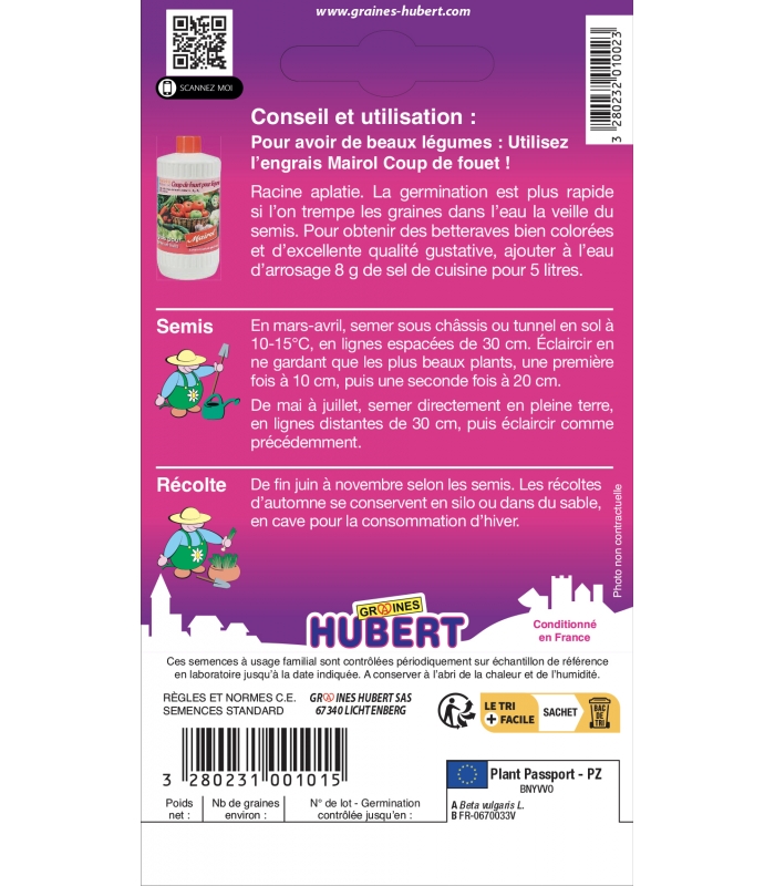 Pour obtenir des betteraves bien colorées et d'excellente qualité gustative, il est conseillé d'ajouter à votre eau d'arrosage, 8g de sel de cuisine pour 5 L d'eau.