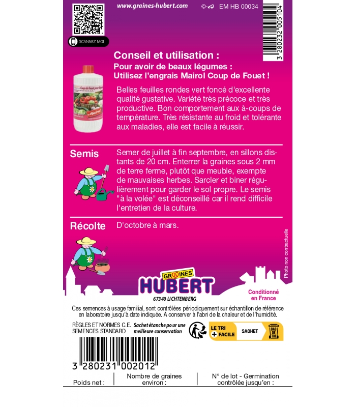 Ces semences à usage familial sont contrôlées périodiquement en laboratoire sur échantillon de référence jusqu'à la date indiquée sur l'emballage.