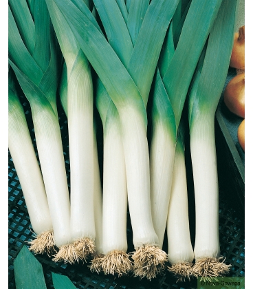 Poireau à port semi-dressé à croissance rapide aux feuilles larges très vigoureuses.