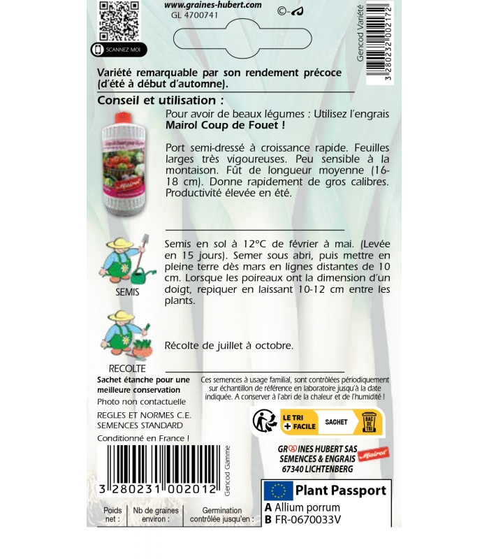 Informations complémentaires sur le Poireau Géant Race Major :