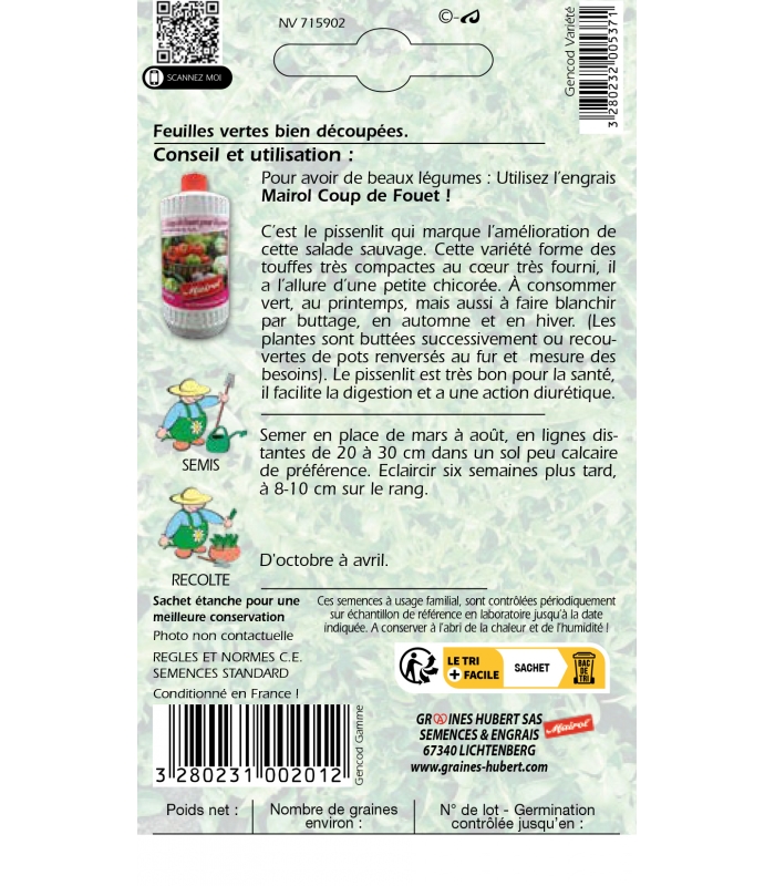 Informations complémentaires sur Pissenlit Vert Amélioré à Coeur Plein :