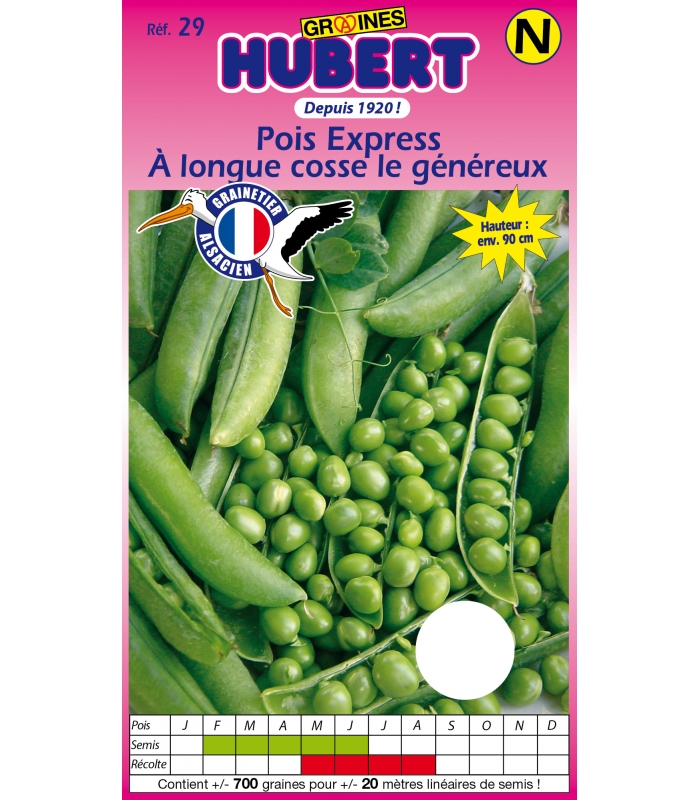 Le semis du pois Express se fait en sol à 10-15°C de février jusqu'en juin.