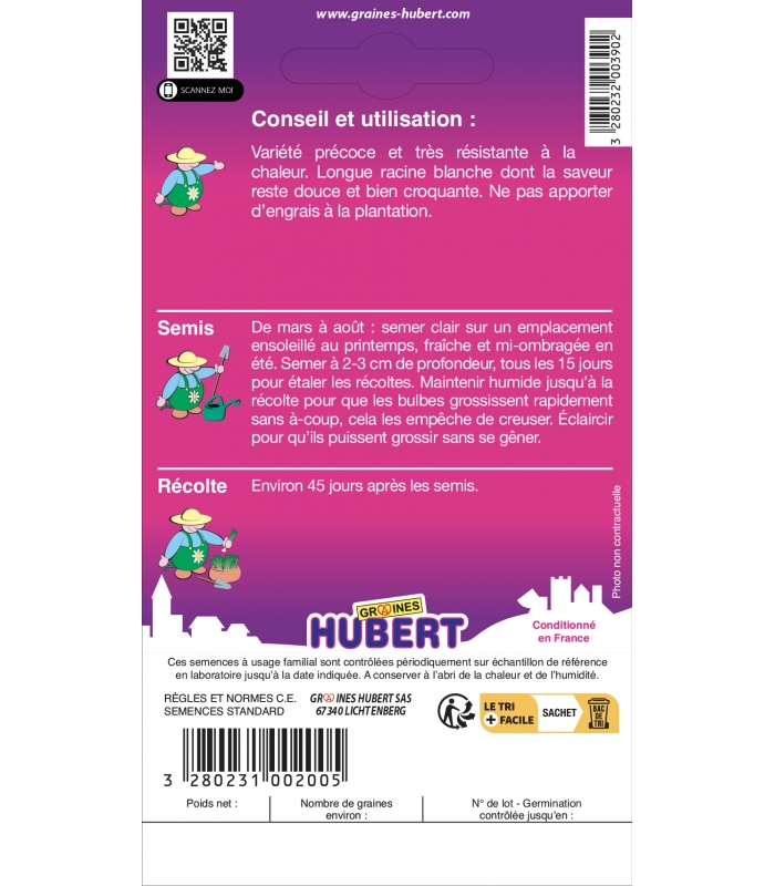 Le radis blanche transparente se récolte environ 45 jours après le semis de mai à septembre.