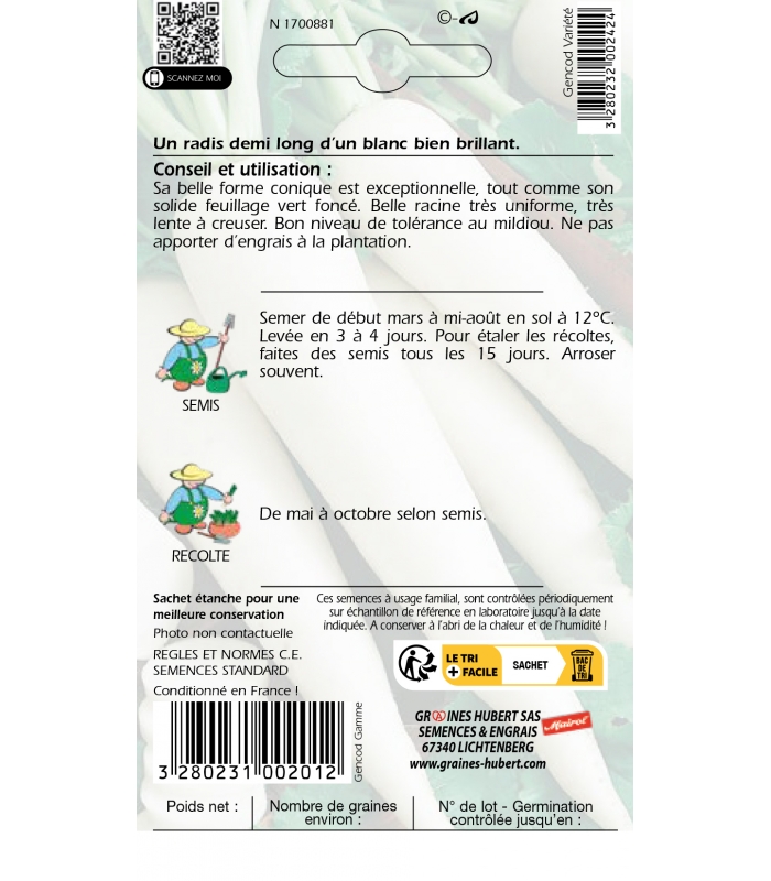 Informations complémentaires sur le Radis Eiszapfen Blanc Rex :