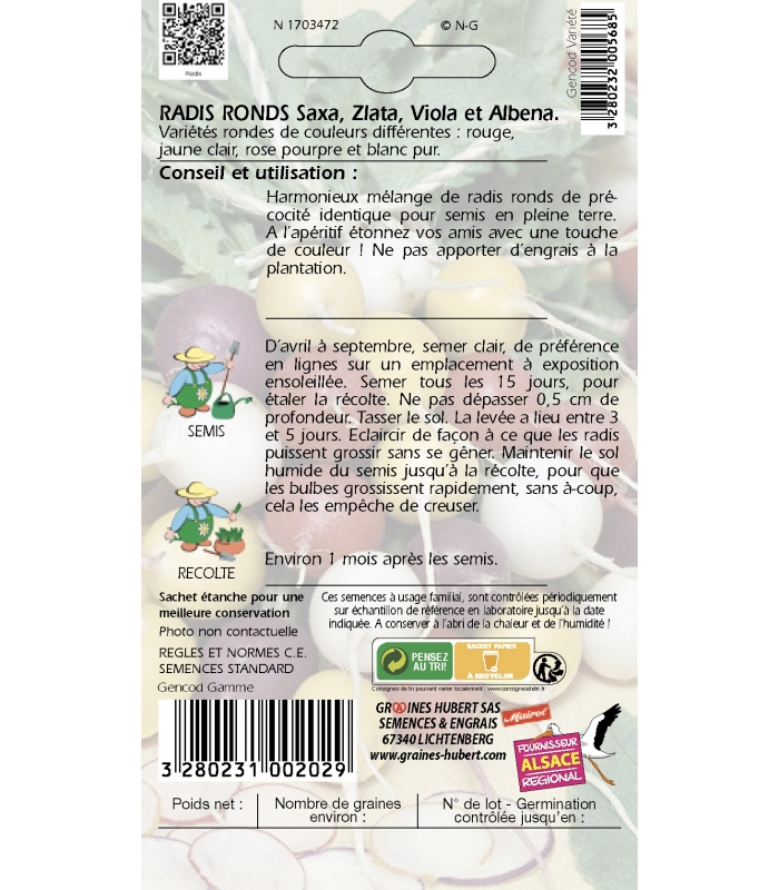Harmonieux mélange de radis ronds de précocité identique pour semis en pleine terre.
