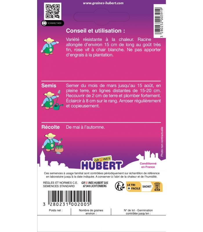 Informations sur les graines de Radis Rose de Pâques 2 :