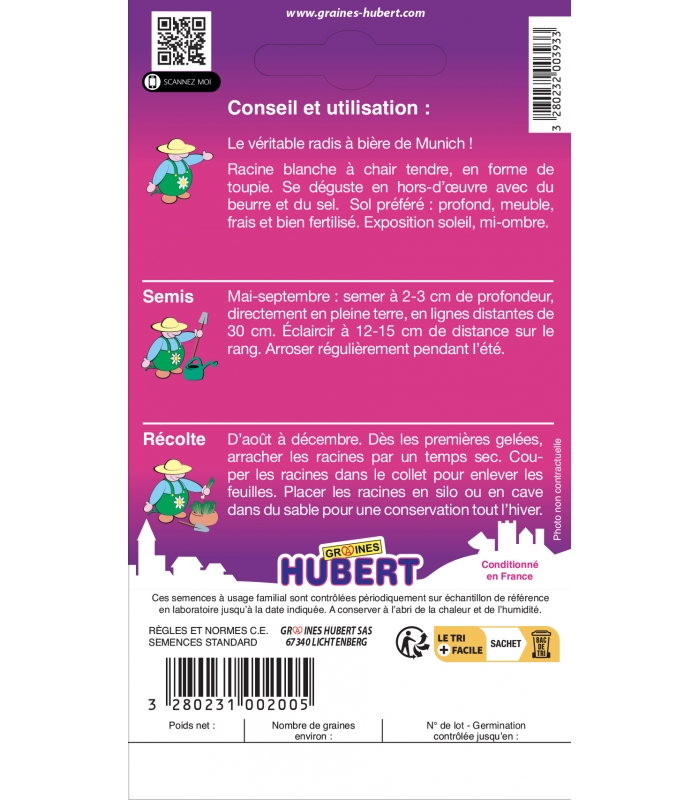 Informations complémentaires sur le Radis Ovale Blanc de Munich :