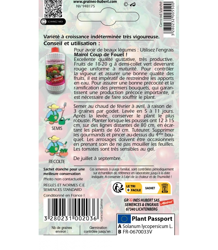 Caractéristiques graines : conditionnement en sachet de 20 graines