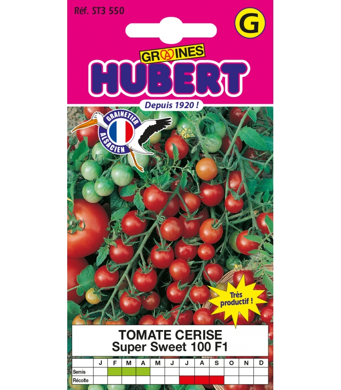 D'excellente qualité gustative la tomate Super Sweet est très productive avec ses fruits de 18-20 grammes à demi-collet vert devenant rouge uniforme à maturité. La tomate Super Sweet est très savoureuse, elle est idéale pour l'apéritif.