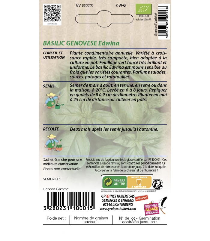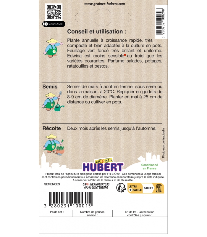 Informations complémentaires sur le Basilic Genovese Edwina BIO :