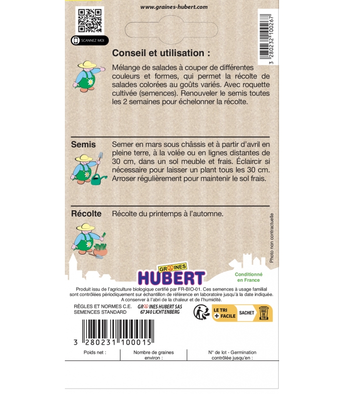 Ces semences à usage familial sont contrôlées périodiquement sur échantillon de référence en laboratoire jusqu'à la date indiquée sur l'emballage.