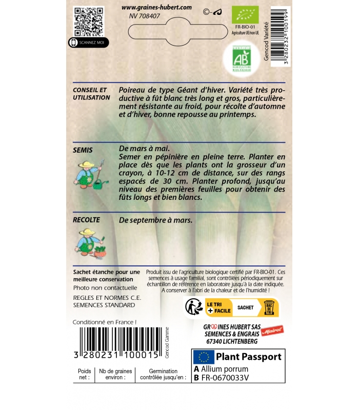 Informations complémentaires sur le Poireau Hannibal BIO :