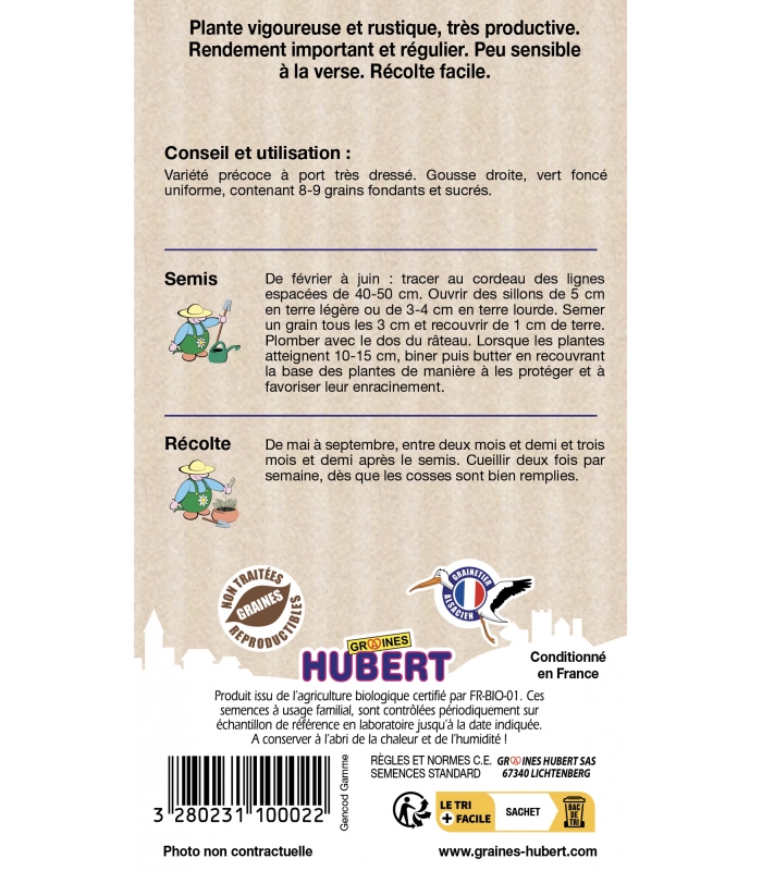 Informations complémentaires sur les pois Karina BIO :