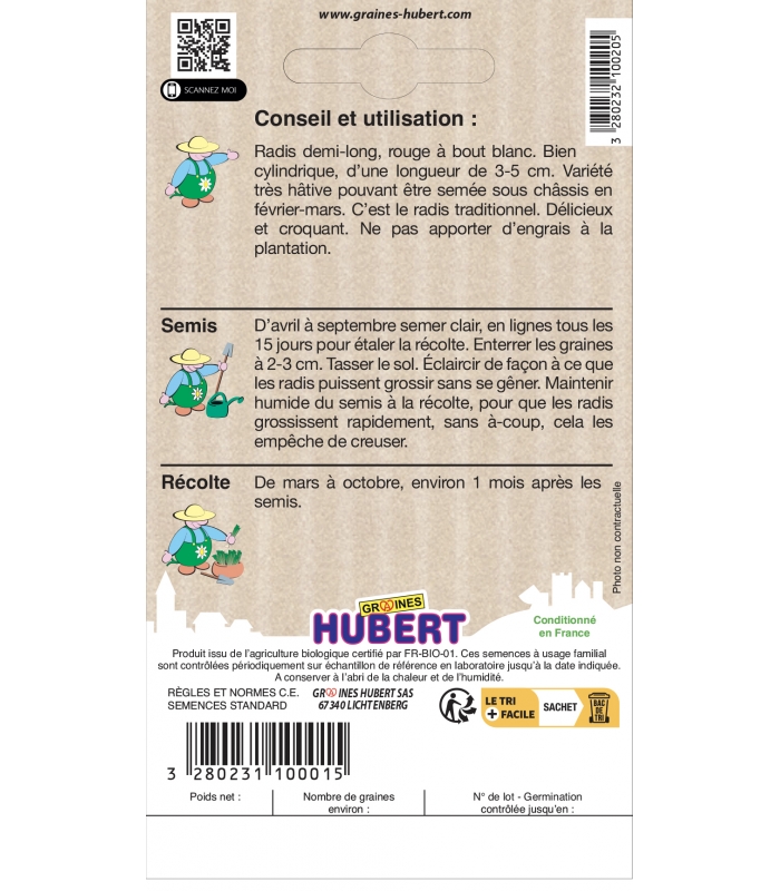Informations complémentaires sur le Radis de 18 Jours BIO: