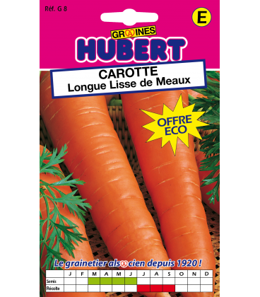 Sachet format ECO de 18 grammes soit environ 19200 graines de carotte longue lisse de Meaux.