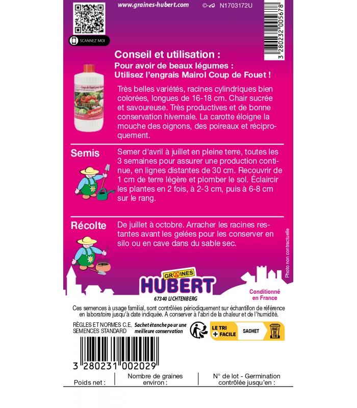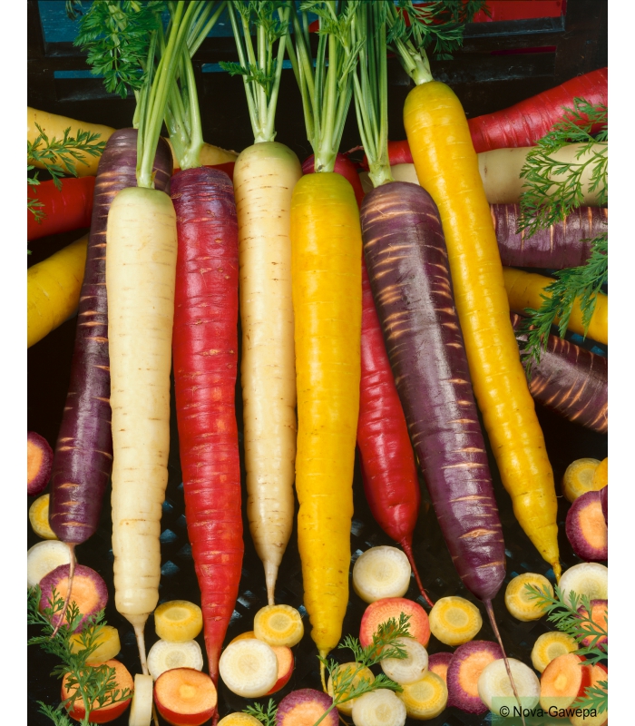 Mélange original et coloré de 4 très belles variétés hybrides de carottes à racines cylindriques bien colorées et à chair sucrée et savoureuse, elles sont productives et de bonne conservation hivernale.