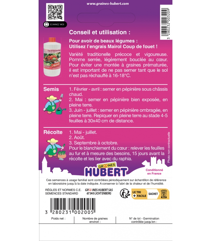 Informations complémentaires sur le Chicorée Scarole Grosse Bouclée Bubikopf :