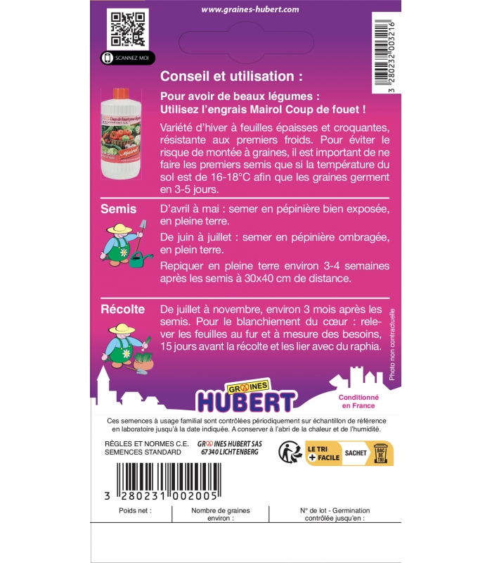 Ces semences à usage familial sont contrôlées périodiquement en laboratoire sur échantillon de référence jusqu'à la date indiquée sur l'emballage.