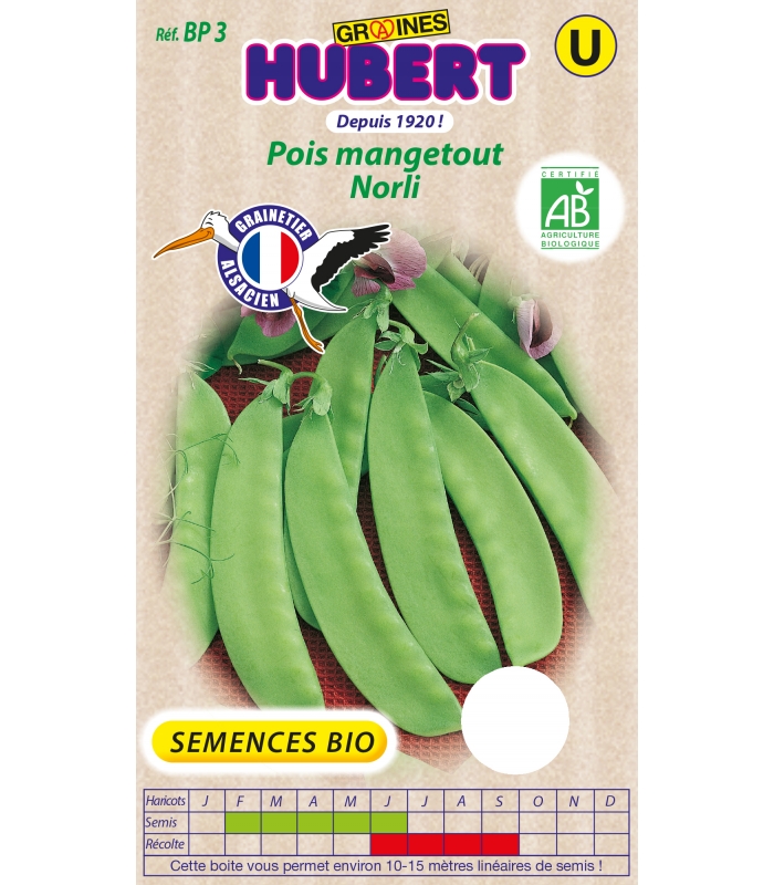 Les graines de pois mangetout Norli sont issus de l'agriculture Biologique, certifié par FR-BIO-01.