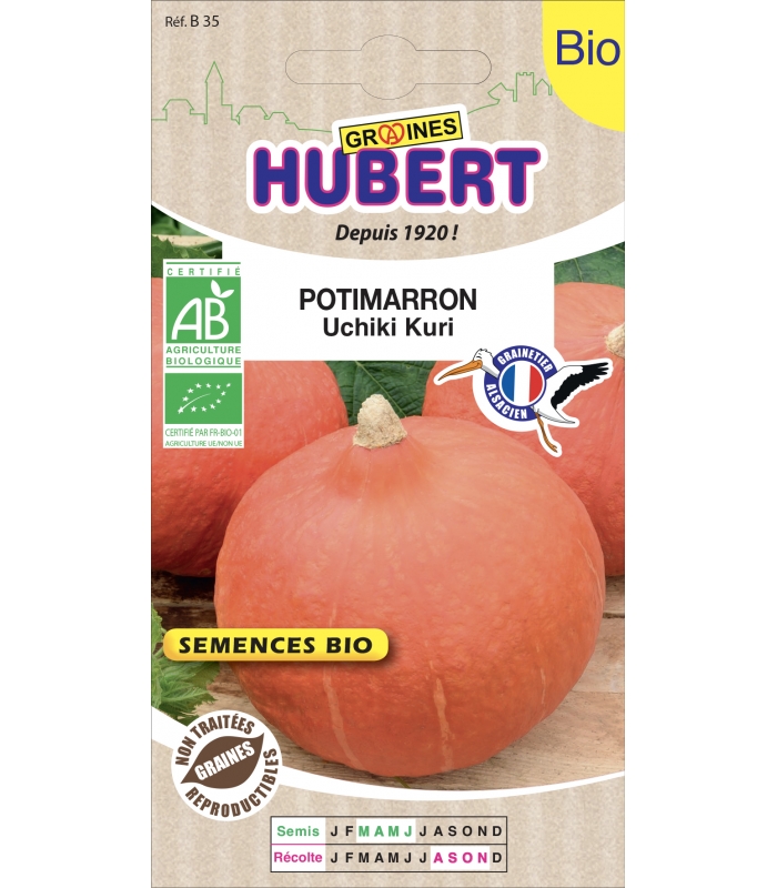 Semences de Potimarrons Uchiki Kuri issues de l'agriculture biologique contrôlée, certifié par FR-BIO-01