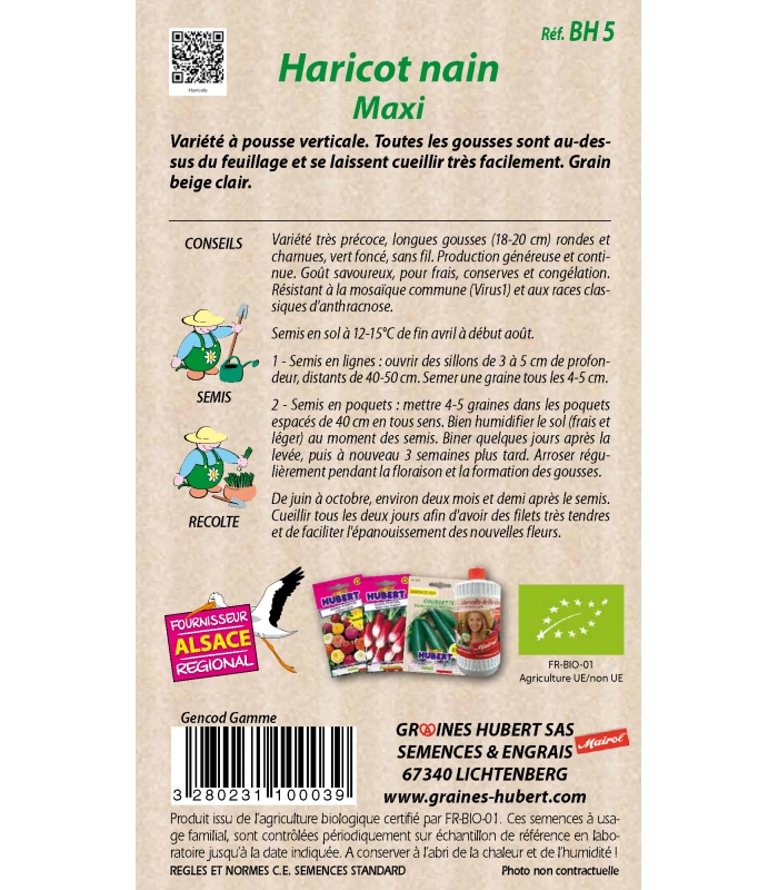 Conseil et utilisation des graines de Haricot Nain Maxi BIO :