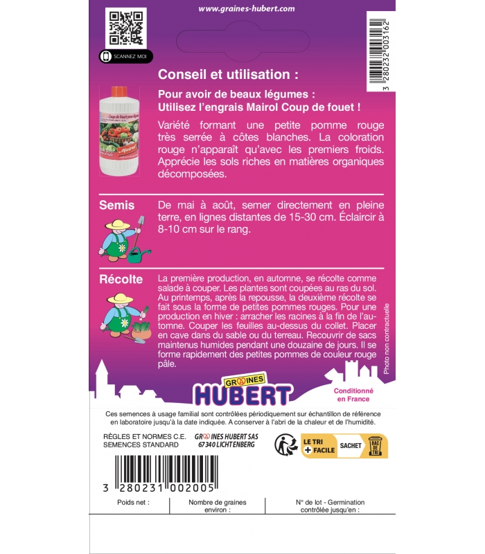 Ces semences à usage familial sont contrôlées périodiquement en laboratoire sur échantillon de référence jusqu'à la date indiquée sur l'emballage.