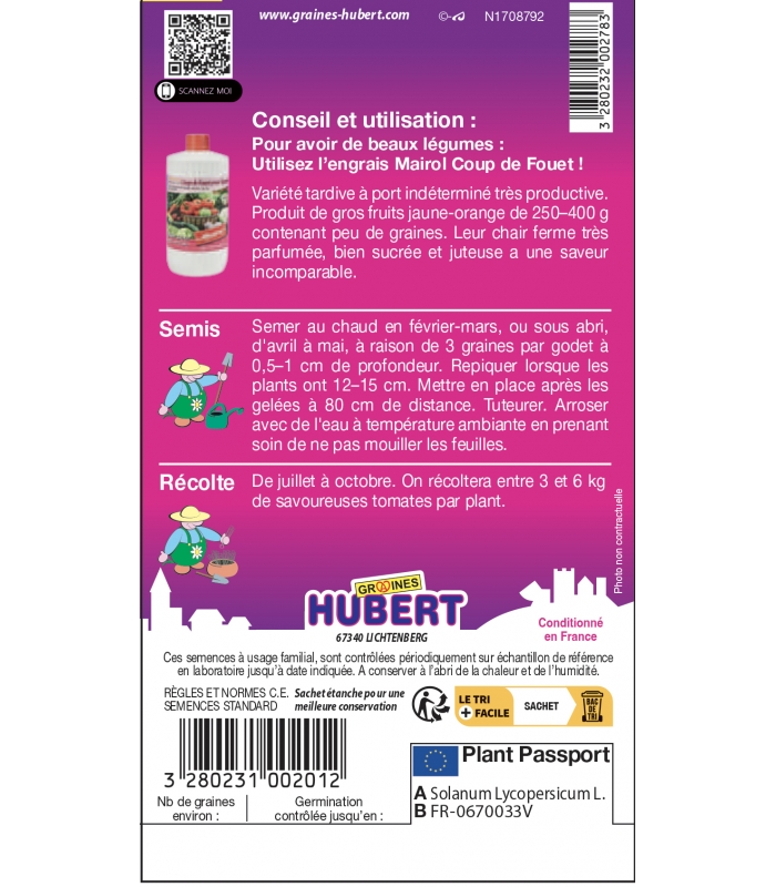 Ces semences à usage familial sont contrôlées périodiquement sur échantillon de référence en laboratoire jusqu'à la date indiquée sur le sachet.