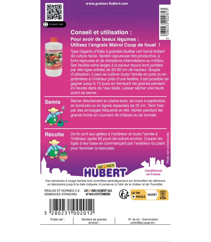 Ces semences à usage familial sont contrôlées périodiquement en laboratoire sur échantillon de référence, jusqu'à la date indiquée sur l'emballage.